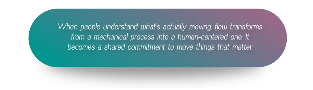 When people understand what’s actually moving, flow transforms from a mechanical process into a human-centered one. It becomes a shared commitment to move things that matter.