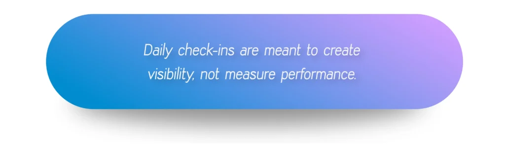 The most effective teams use their check-ins not to report, but to reveal. They know that saying “I’m blocked” is not a weakness — it’s an act of trust. It means the process works, the team listens, and support is available.